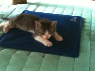 いまは、我が家にやってきてのんびり昼寝中です。